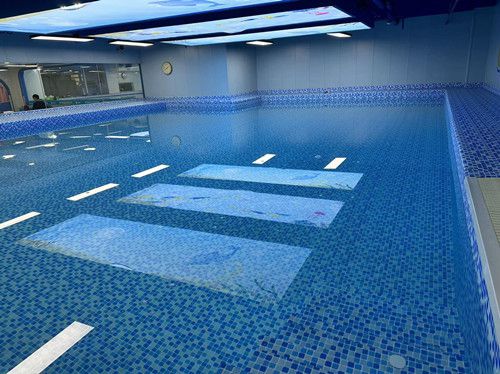 本項目位于河北省衡水市,為室內兒童游泳池,之前安裝的游泳池膠膜,因為施工問題導致漏水,找到我們進行整改,采用1.5mm游泳池膠膜進行整改,池壁進行刮膠粘接,接縫采用高溫工具進行熱熔拼接,從而形成一個整體的密封結構,整體效果如下: